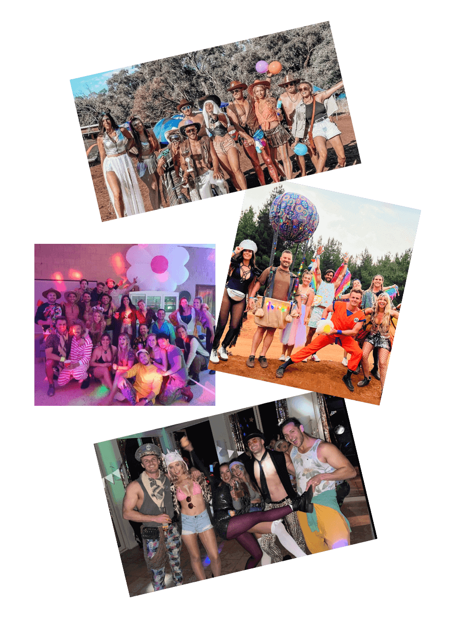 A big theme party where two people dress up as bride and groom, and the rest of the party people dress up as wedding guests.